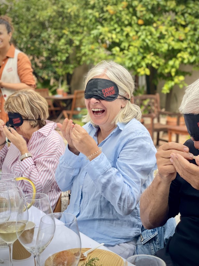 Ens reunim al voltant d’una taula i fem viatjar el paladar pel territori català. Ens tapem puntualment els ulls amb un antifaç i deixem que siguin els sentits els que juguin i connectin amb l’essència dels productes, les seves olors i textures.
